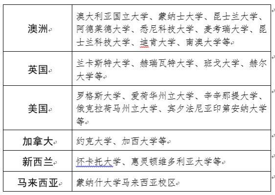协议合作的海外大学(部分):