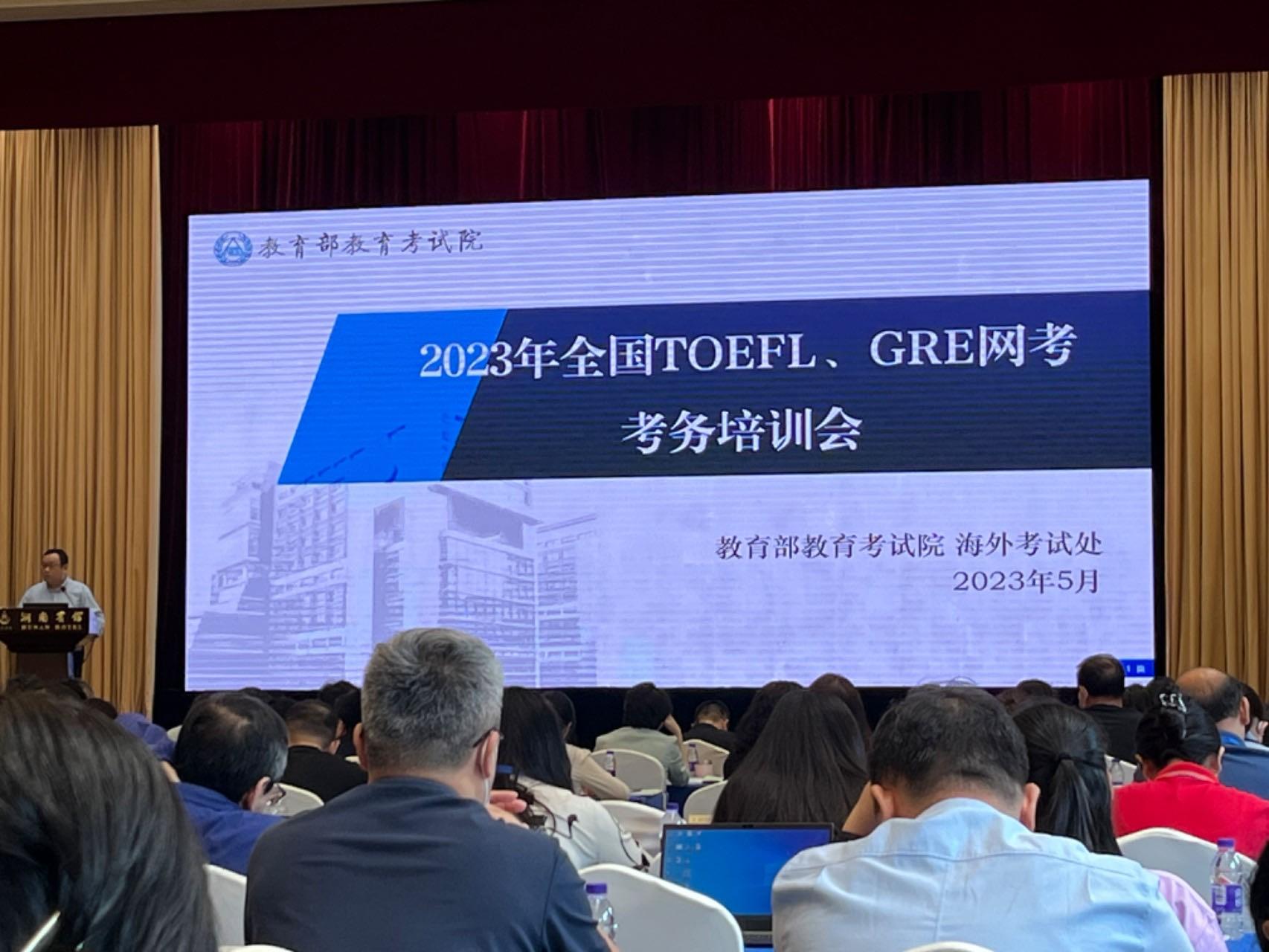 副院长范映红与海外考试中心负责人何军参加了由教育部教育考试院在湖南长沙举办的2023年全国托福、GRE网考考务培训会。此次会议也是三年来,教育考试院首次组织的全国各考点的线下会议,会议邀请了全国各地的托福、GRE考点负责人及分管领导参会,会议旨在提高各考点考务工作的专业素质,增强考务工作的规范性和安全性。