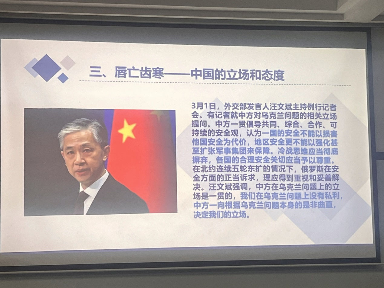 的学子,及时关注国际局势尤为重要,因为同学们都将在完成国内阶段的学习之后跨出国门。更应该关注国际时事、社会热点问题,做一名知世事、知国事、知时事的新时代合格大学生。