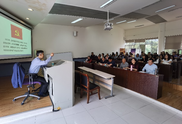 3.邀请专家讲党课。5月8日,支部邀请西南财经大学纪委副书记、纪检监察办公室主任、教授、博士,曾朝夕讲党课,党课主题为:铭记艰辛历史,不断增强“四个自信”。支部全体教职员工参加。
