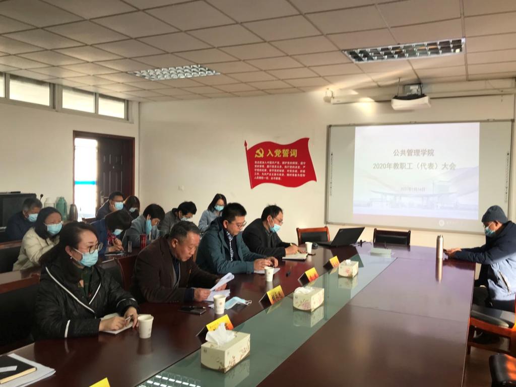 在德济楼508会议室召开2020年度教职工大会,全院教职工参加了会议。会议由院党委书记胡永远主持。