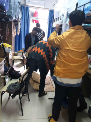 寝室长们在11号宿管站进行寝室安全检查。主要检查学生的用电情况,排查是否有大功率及违规电器的使用,以及是否有使用明火、私拉乱接电源线等现象的发生。