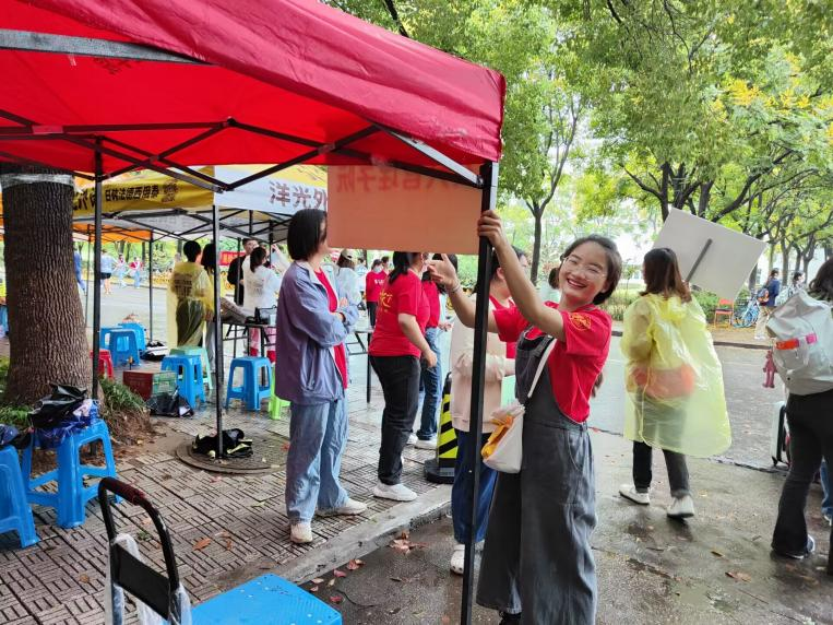 再大的风雨也挡不住志愿者们迎接新生的步伐。早上七点,学长学姐们组成的迎新志愿队身披雨衣等候在新生宿管站门口,举着指引牌引领新生,帮助新生搬运行李。澳门银河娱乐场