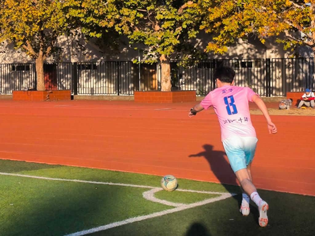 冬日暖阳绿茵场,正当芳华心飞扬。随着一声哨响,足球少年相继登场。草坪上,精彩的比赛拉开帷幕。校友与在校生们精力充沛、激情似火、传带默契、防守完美。校友们积极拼抢,展现他们娴熟的足球技术,盘带滑铲引起了一阵喝彩,“粉色闪电”在跃动,老生风采一览无余。在校生们斗志激昂,略显稚嫩的脸上是坚定、是无畏,青春热血激情四射。