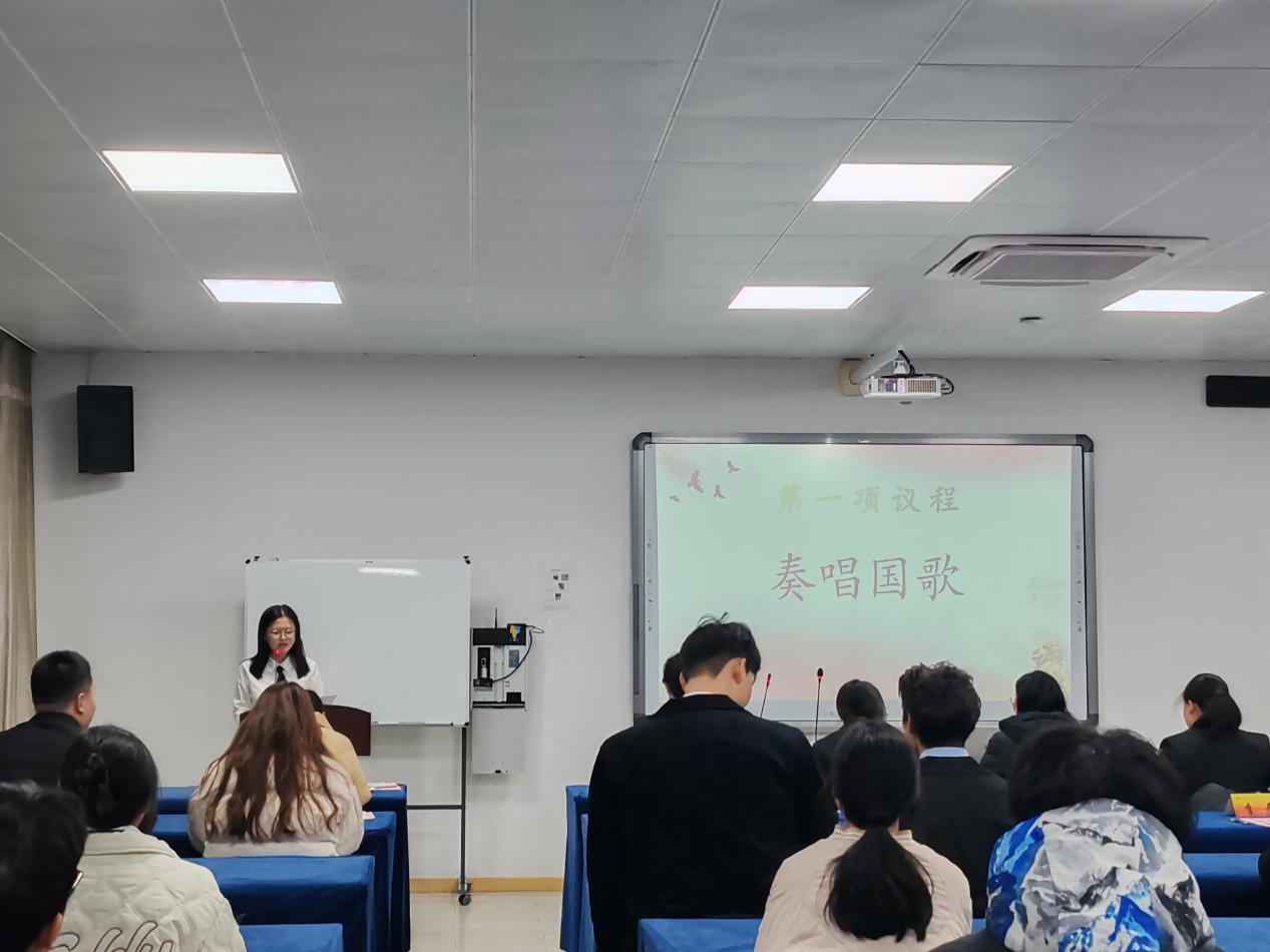 第一项议程——奏唱国歌。会议全体人员集体起立奏唱中华人民共和国国歌。