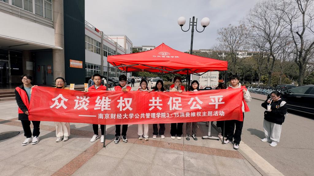 学生会于中苑食堂门口的广场举办了一场以“众谈维权,共促公平”为主题的315消费维权活动,此次活动旨在提高广大学生的消费维权意识,保障消费者的合法权益。