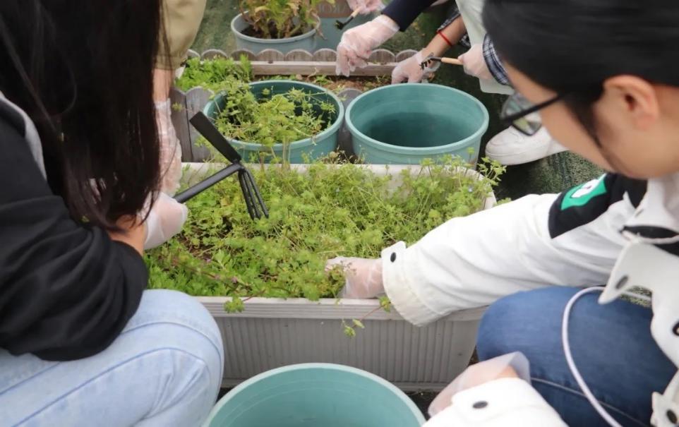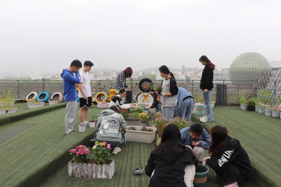 学生会组织于4月20日在专二五楼草坪开展菜苗种植活动。