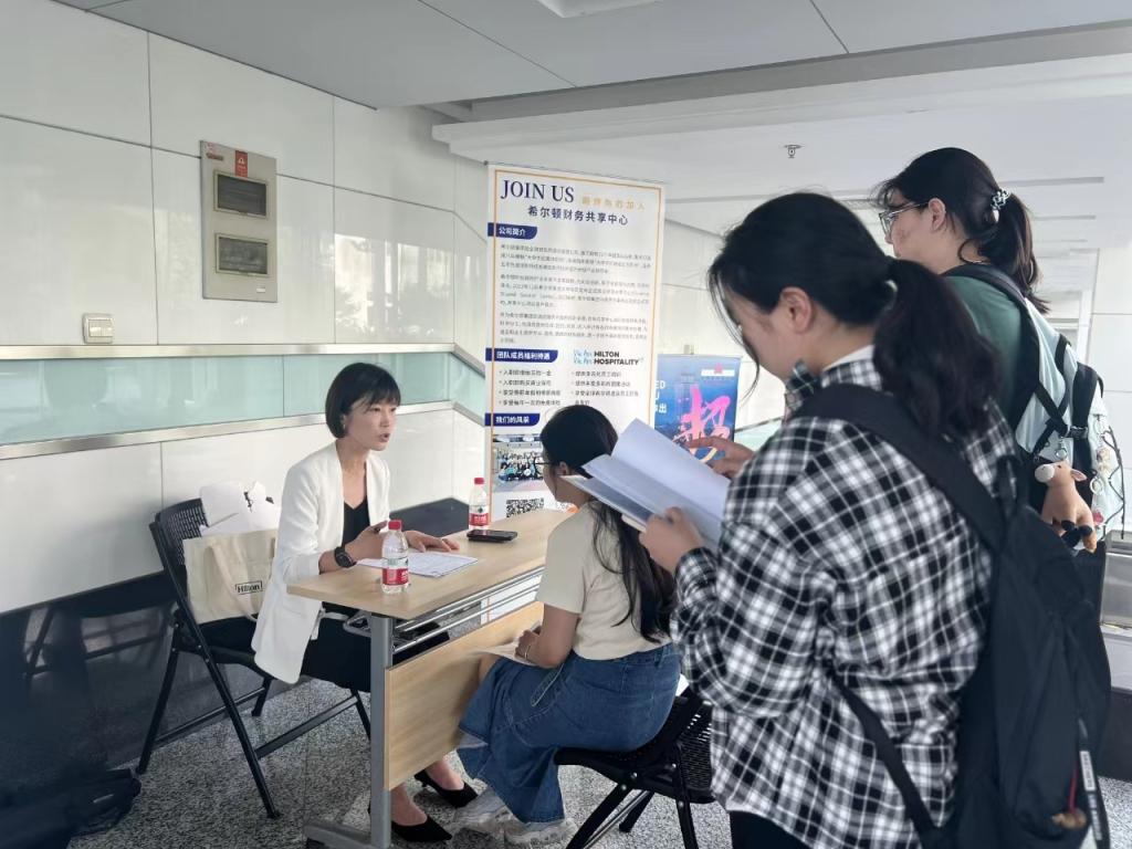学子手持精心制作的简历,踊跃参与招聘会,以自信和热情的态度与企业代表沟通交流。