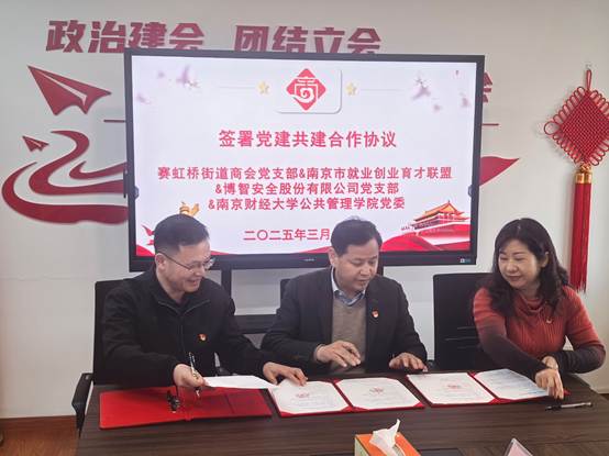 党委联合博智安全科技股份有限公司党支部、赛虹桥街道商会党支部及南京市就业创业育才联盟,在雨花台区吉安大厦举办“党建领航促就业 共话发展新篇章”主题交流活动,深入推进访企拓岗工作,助力学生就业。