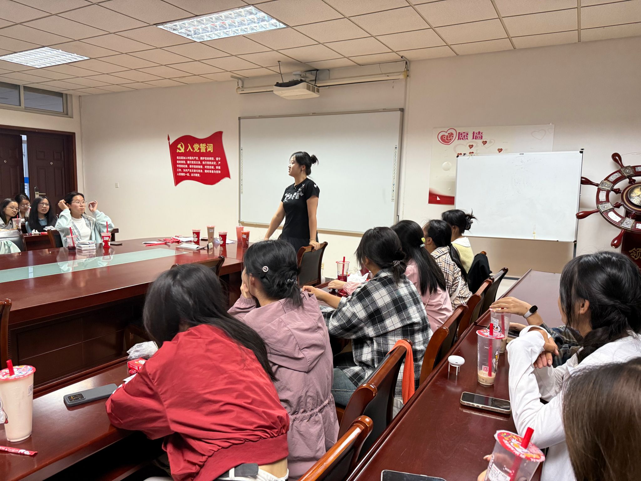 活动伊始,香气四溢的披萨和清甜爽口的奶茶准时就位。大家围坐在一起,指尖分食着热气腾腾的披萨,手中捧着暖乎乎的奶茶,从“喜欢的口味”聊到“对学生会的期待”。没有拘谨的开场白,只有美食催化下的轻松交谈,陌生感在奶茶的甜香与披萨的酥脆中悄然消散,初识的尴尬也被这份烟火气温柔化解。