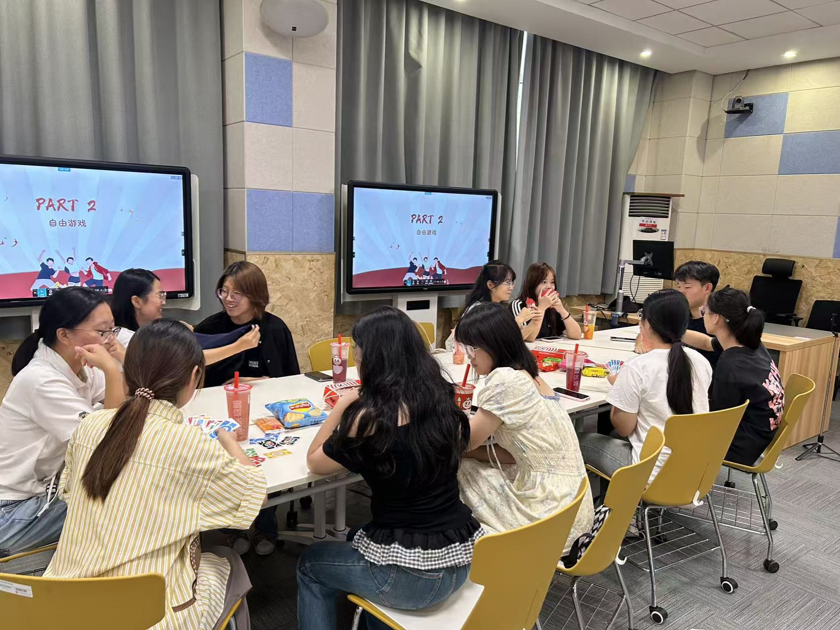 自由游戏环节,有狼人杀、UNO等桌游,大家可根据自己感兴趣的游戏自由组队,现场化身欢乐的桌游乐园 。狼人杀阵营里,成员们凭借敏锐的观察力与逻辑推理能力,激烈交锋、互探虚实;UNO牌桌上,色彩缤纷的卡牌在手中流转,反转不断的局势让大家时而紧张屏息,时而欢呼雀跃 。成员们在游戏中默契配合、互相调侃,原本分散在不同部门的成员,此刻成为并肩作战的伙伴,团队凝聚力在不知不觉中得到提升 。