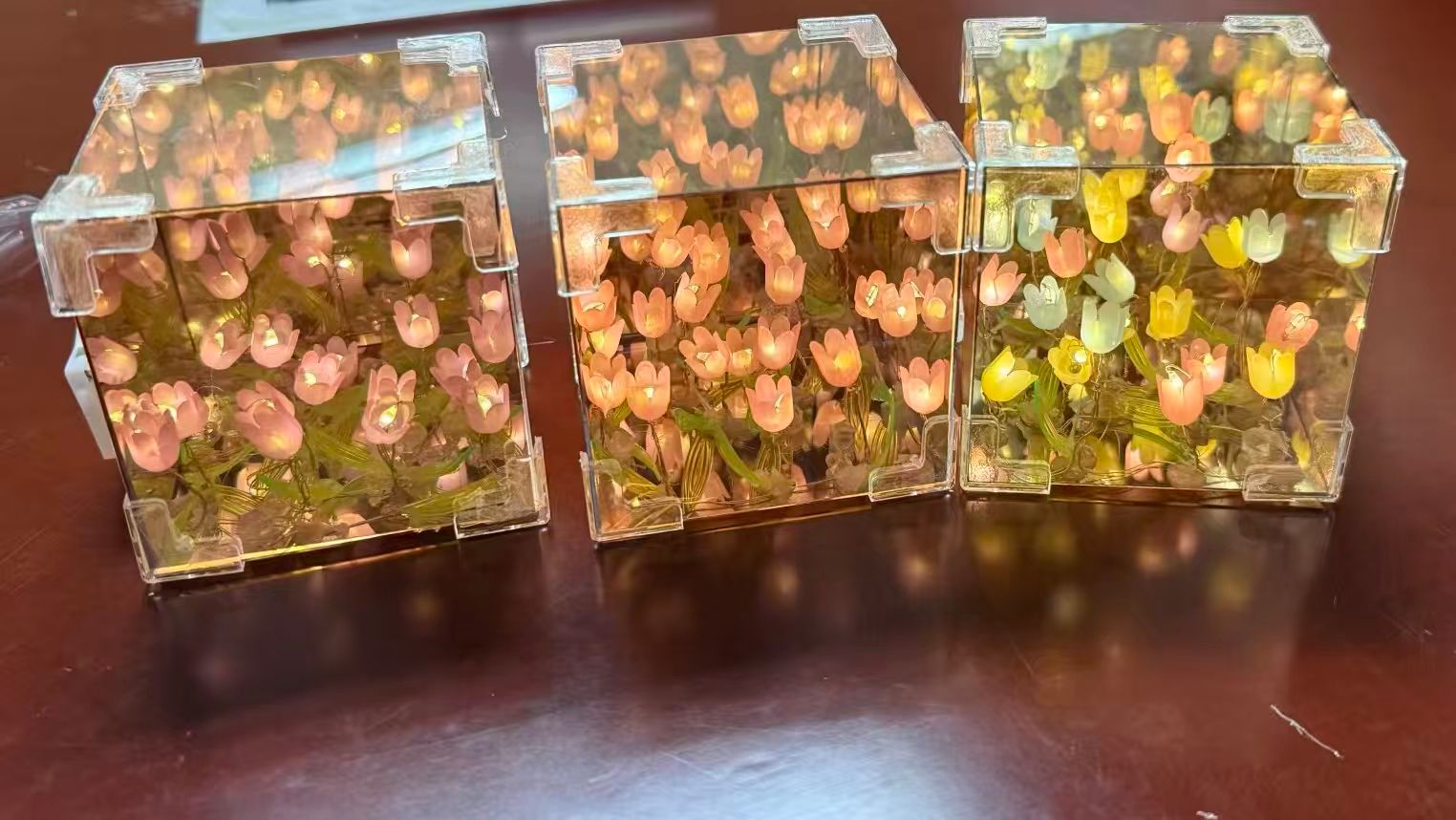 如果说知识问答是一次智慧的碰撞,那么活动的第二部分,创意手工制作,则是一场心灵的放松。在工作人员的指导下,同学们动手制作了郁金香花海小夜灯作为节日礼物。从材料的挑选到构件的拼接再到灯光的调试,大家在细致操作中享受创作的乐趣,在专注投入中感受手作的温度。一盏盏小夜灯在大家的巧手中逐渐成型,整个活动现场弥漫着温馨与静谧的气息。不少同学表示,亲手制作一盏小夜灯,既是对节日的纪念,也是一份独特的馈赠,点亮的不只是灯,更是心中的美好期许。