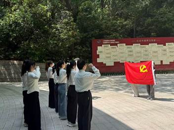 参观结束后,全体预备党员在展馆前举行入党宣誓仪式。面对鲜红的党旗,预备党员右手握拳,庄严宣读入党誓词,表达了忠诚于党、服务人民、为共产主义事业奋斗终身的坚定信念。随后,支部正式党员为预备党员逐一佩戴党员徽章,勉励其牢记党员身份,践行入党初心,自觉在学习和生活中发挥先锋模范作用。