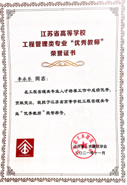 此次评选由江苏省土木建筑学会主办,秉持公平、公正、公开的原则,在院校推荐的基础上,由专家组成的评委会对候选教师的资格、资料、科研成果和综合教学能力进行了综合评定,最终从省内19所设有工程管理类专业的高校中评选出了8位优秀教师。