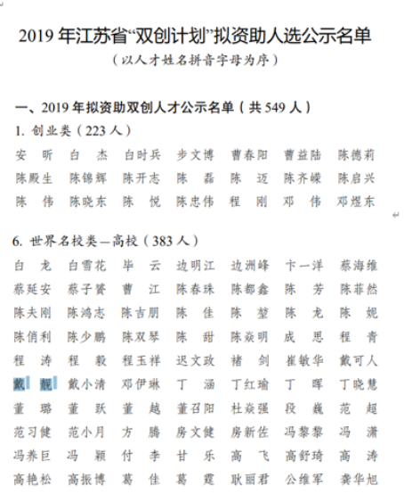房地产系副教授戴靓荣获2019年江苏省高层次创新创业人才引进计划(双创计划)“双创博士”称号。
