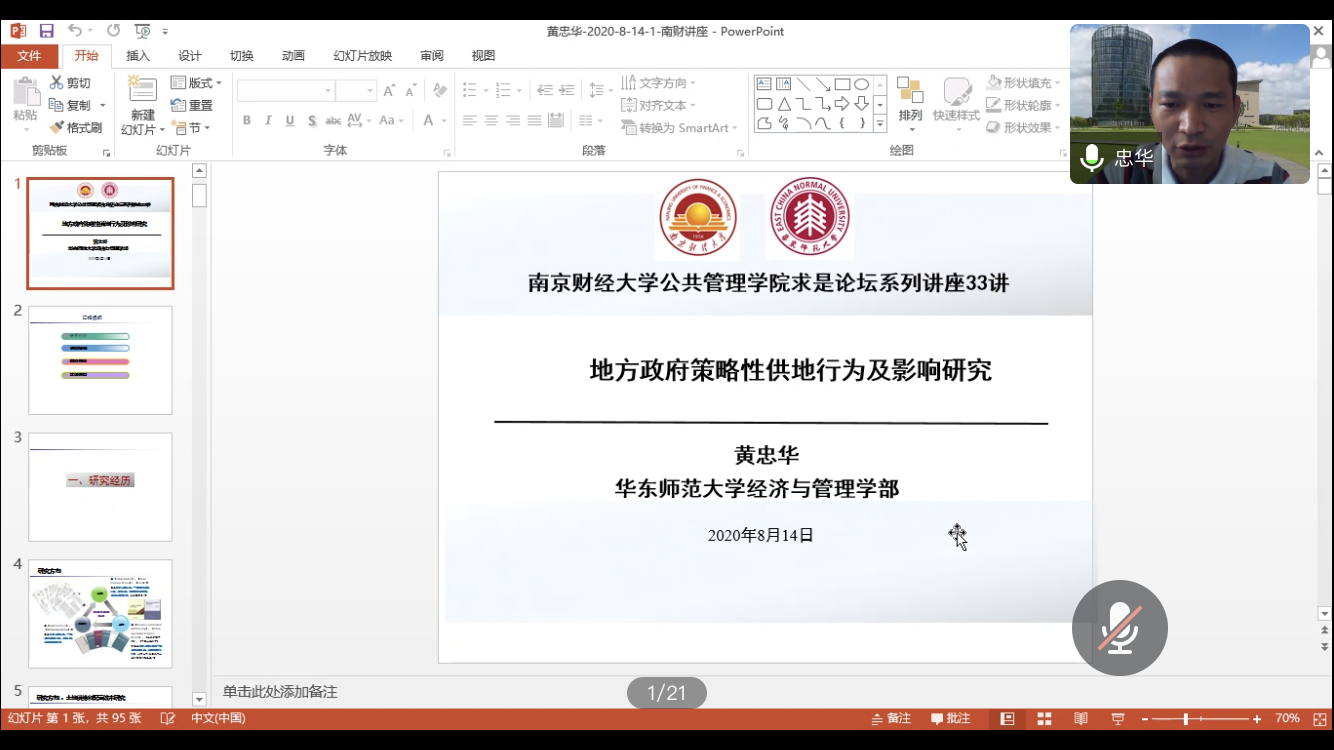 814日下午,应澳门银河娱乐场 邀请,华东师范大学博士生导师黄忠华教授在线(腾讯会议)作了题为“地方政府策略性供地行为及影响研究”的学术报告。报告由澳门银河娱乐场 副院长李永乐主持,澳门银河娱乐场 部分教师、研究生和国内外相关学者聆听了报告。