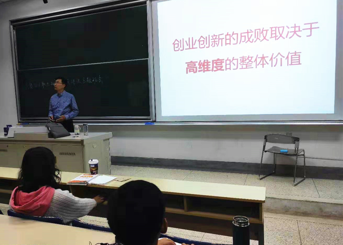 做了题为《创业企业的高维度生存之道》的讲座。创新创业指导老师代表、学生代表近100人参加了本次讲座。