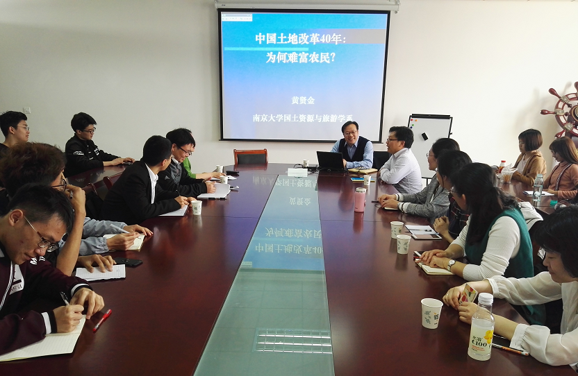 3月28日上午,应澳门银河娱乐场 邀请,南京大学地理与海洋科学澳门银河娱乐场 副院长、博士生导师黄贤金教授来澳门银河娱乐场 作了题为“中国土地改革40年为何富农难?”的讲座。讲座在仙林校区德济楼508会议室举行,讲座由澳门银河娱乐场 副院长李永乐主持,澳门银河娱乐场 相关教师、部分学生参加了讲座。