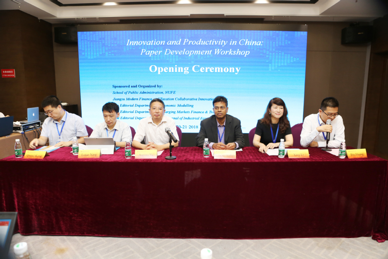 7月21日,由《Economic Modelling》和《Emerging Markets Finance and Trade》编辑部主办,澳门银河娱乐场 、江苏现代财税治理协同创新中心以及《产业经济研究》编辑部共同承办的“中国创新与生产力国际学术论文研讨会”在澳门银河娱乐场 召开。澳门银河娱乐场 党委常委、副校长俞安平教授、《Economic Modelling》主编Sushanta Malick教授、副主编Lutao Ning教授,澳门银河娱乐场 科研处处长李杏教授、《产业经济研究》编辑部孔群喜主任,以及《Emerging Markets Finance and Trade》期刊三位客座编辑出席了开幕式。有来自伦敦玛丽王后大学、英国国家经济与社会科学研究院、香港中文大学、北京大学、浙江大学、中国人民大学、南京大学、中山大学、中央财经大学、上海财经大学等近30所高校的专家学者,以及澳门银河娱乐场 部分教师、研究生参加了此次研讨会。