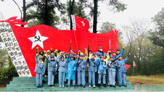 老师们冒雨重走长征路,风雨交加中,遥想当年红军战士长途跋涉的艰辛,大家深刻体会到了革命先烈为了共产主义理想和信念,不怕牺牲、奋勇向前的大无畏精神。