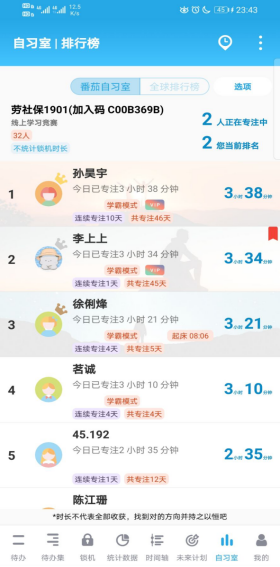 本着严于律己的目标,19级学生借助番茄To Do app 建立各个班级独属的自习室,让同学们互相监督激励建立了良好的学习氛围。组织本次活动的李晓燕老师表示,把竞技风格引入学习,借助互联网信息化平台,用线上学习竞赛的方式让学生具有更强的学习竞争意识,人人都争当全场最佳的MVP,让学习更具激励性和竞争性。同时充分利用课余时间来巩固课上已学知识点,静下心来去思考,找出自己的困惑之处及时反馈