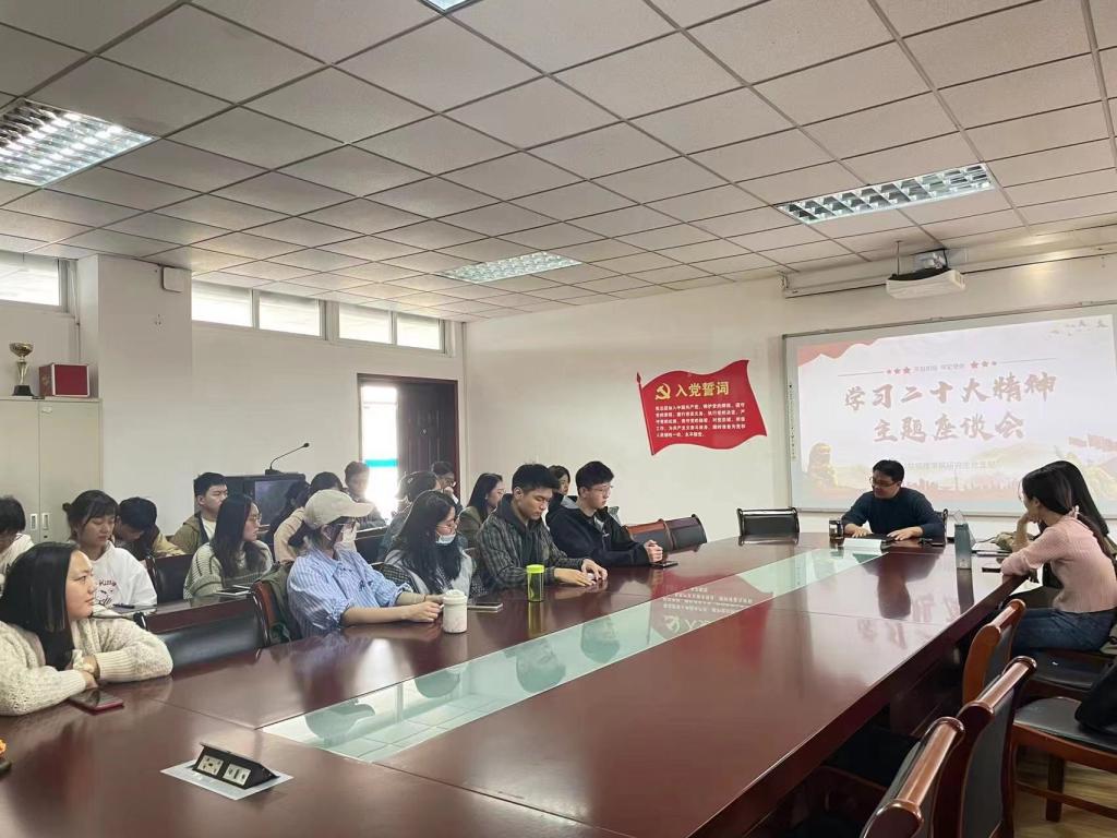 围绕深入贯彻党的二十大精神,支部党员发表了自己的感想。2022级正式党员冯睿劼同志表示,作为党和国家事业的建设者和接班人,要将个人理想融入党和国家的事业中,要以青春之“我”赴二十大之约。2020级预备党员殷宗贤同志表示,在学习党的二十大精神的过程中,再次深刻地感受到,我们这一代青年应该更加坚定听党话、跟党走,追求政治进步,努力实学实干,以实际行动践行初心使命。支部书记史璐瑶同志说:“我感受到了青年蓬勃的活力与强大的力量,相信在党的二十大精神的引领下,这股力量将向着中华民族的伟大复兴这一崇高目标努力。今后,我会努力将这股精神传递给身边每位同学。”黄建伟院长强调,党支部所有党员要以党的二十大精神为指导,把学习贯彻党的二十大精神转化为推进各项学习工作的强大动力,磨砺坚强意志,增长本领才干,在攀登知识高峰中追求卓越,在肩负时代重任时行胜于言,努力成长为堪当民族复兴重任的时代新人。