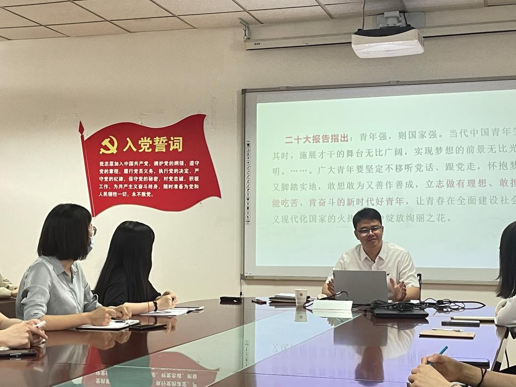 院长、研究生党支部政治辅导员黄建伟教授在德济楼508会议室为研究生党支部全体党员讲授题为“立志成为新时代好青年”的专题党课。