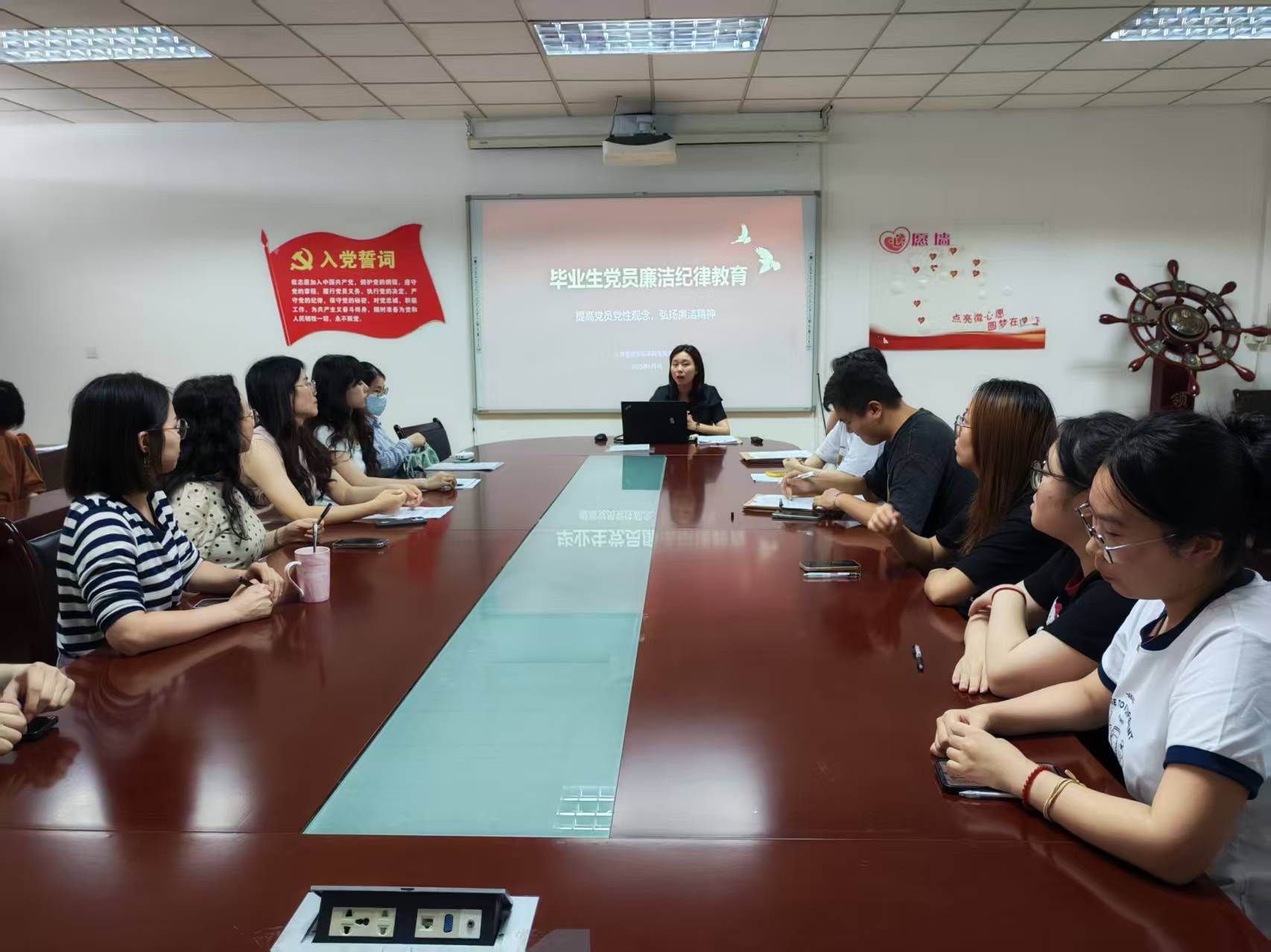 于6月16日下午2点在德济楼508会议室举办了毕业生党员廉洁纪律教育专题活动,为即将毕业的学生党员上好毕业前的“最后一课”,本科生党支部委员会和全体毕业生党员参加活动。
