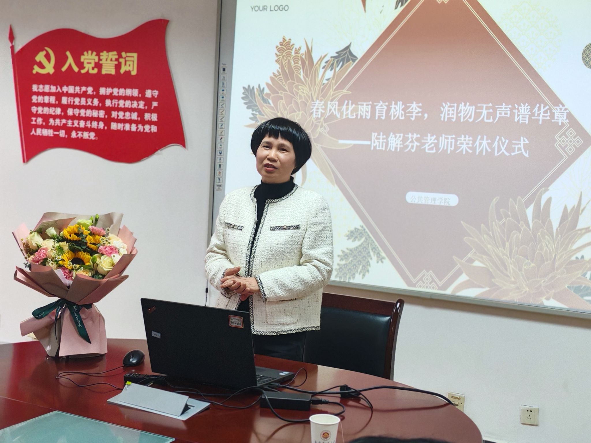 仪式最后,澳门银河娱乐场 领导和同事们向陆解芬老师赠送了鲜花和纪念品,表达了对她的敬意和祝福。整个仪式在温馨和谐的氛围中圆满结束。陆解芬老师的荣休仪式不仅是对她个人职业生涯的总结,也是对澳门银河娱乐场 教师精神的传承和弘扬。她的敬业精神和专业素养将激励着一代又一代的澳门银河娱乐场 师生,为澳门银河娱乐场 的发展和教育事业的进步贡献力量。